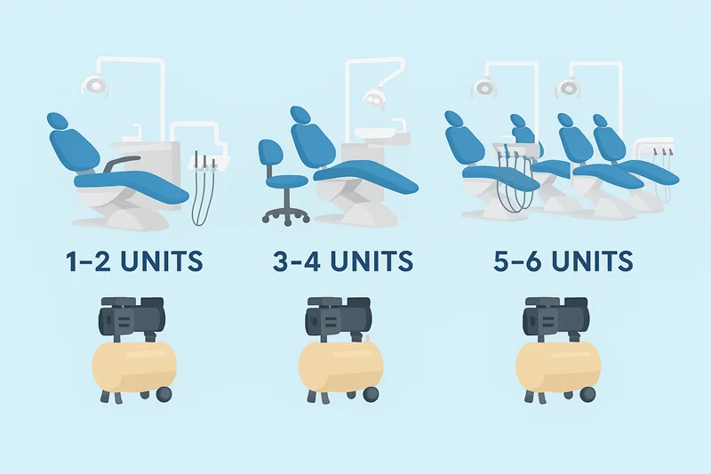 برای انتخاب کمپرسور دندانپزشکی مناسب، کافی است ظرفیت آن را بر اساس تعداد یونیتها تعیین کنید، کمپرسور باید اویل فری باشد، فشار کاری بین ۵.۵–۶.۵ بار داشته باشد و مخزن هوا برای جلوگیری از افت فشار در نظر گرفته شود. برای جزئیات بیشتر به مقاله ما درباره انتخاب کمپرسور دندانپزشکی مراجعه کنید.