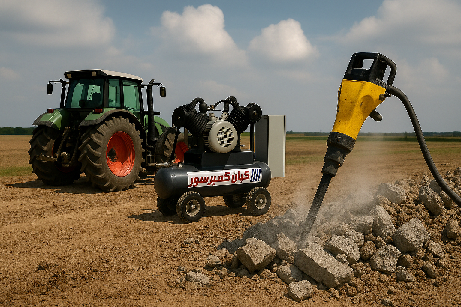 اگر پروژه شما نیازمند ابزارهای پنوماتیک قوی مثل پیکور، چکش بادی یا دریلهای صنعتی است و در محیطی بدون دسترسی به برق کار میکنید، کمپرسور پشت تراکتوری انتخابی ایدهآل خواهد بود.