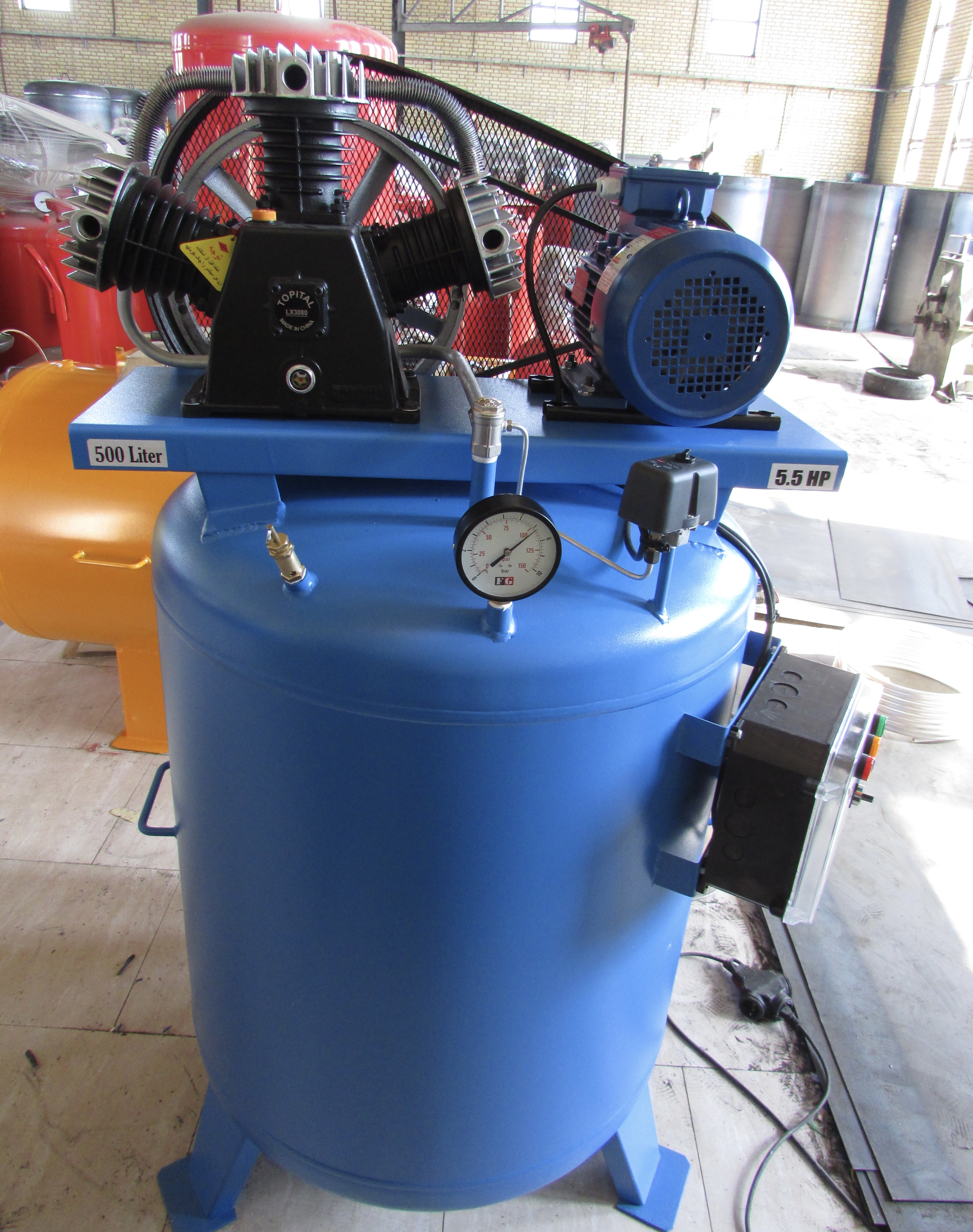 كمپرسور ٥٠٠ ليتري سه سيلندر ٥.٥ اسب سه فاز ( با تابلو برق مبلغ ٤ ميليون تومان اضافه مي شود )