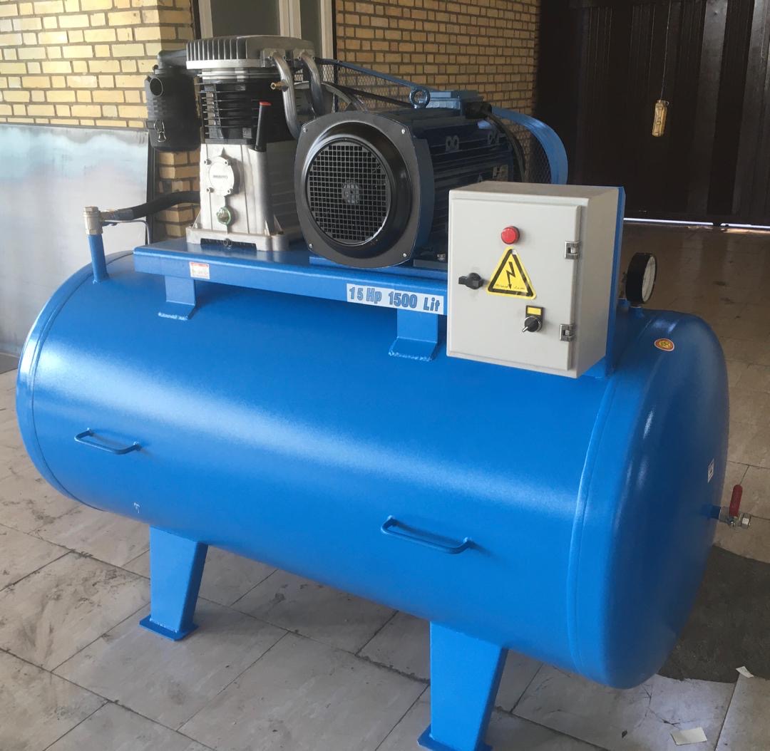 هواساز دو سیلندر دومرحله ای abac b 7000 ایتالیا الکتروموتور، ۱۵ اسب سه فاز ، مخزن ذخیره ۱۰۰۰ لیتری ، ۶ میل ، به همراه تابلو برق کامل تولید باد ۱۵۰۰ لیتر در دقیقه ،فشار کاری ۱۱۰ بار