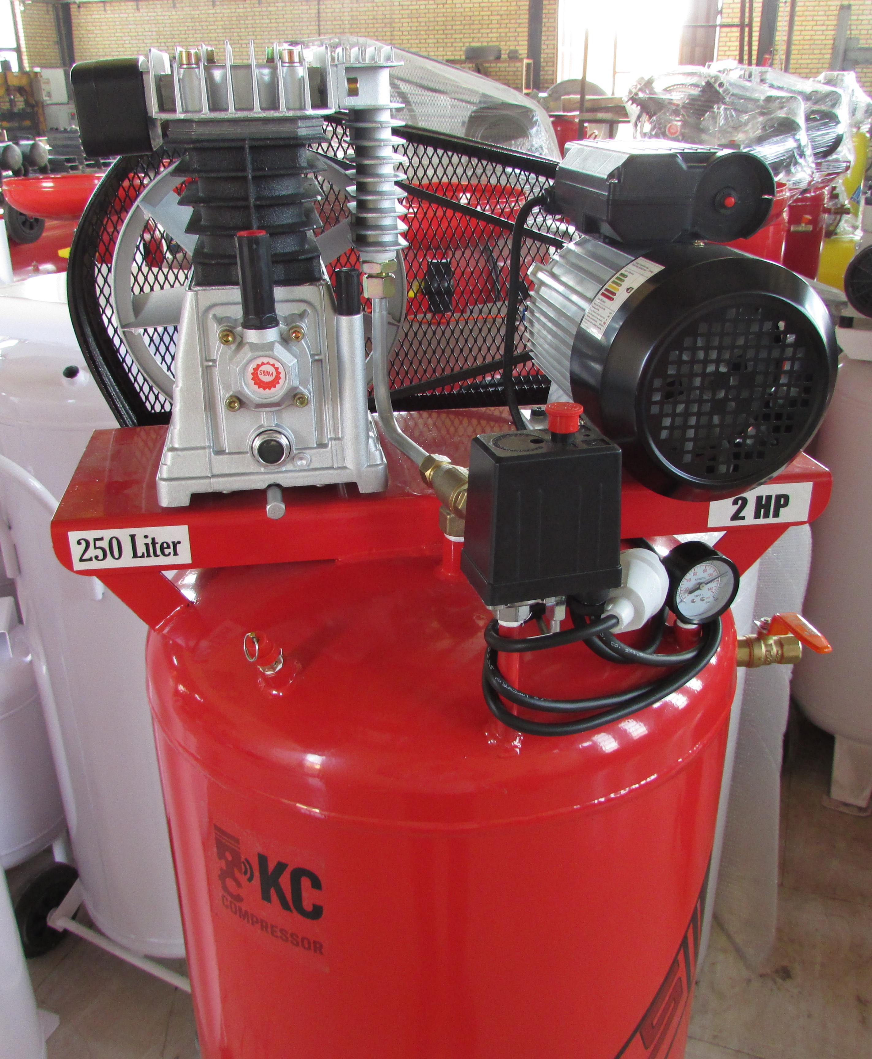 كمپرسور ٢٥٠ ليتري با هواساز دوسیلندر کتابی قدرت ۲ اسب بخار ،مخزن ۲۵۰ لیتری ، فشار کاری ۶ الی ۸ بار مناسب ،برای کارواش ،آپاراتی تعمیرگاه کوچک ،کارگاه هایکوچک ، نقاشی اتومبیل