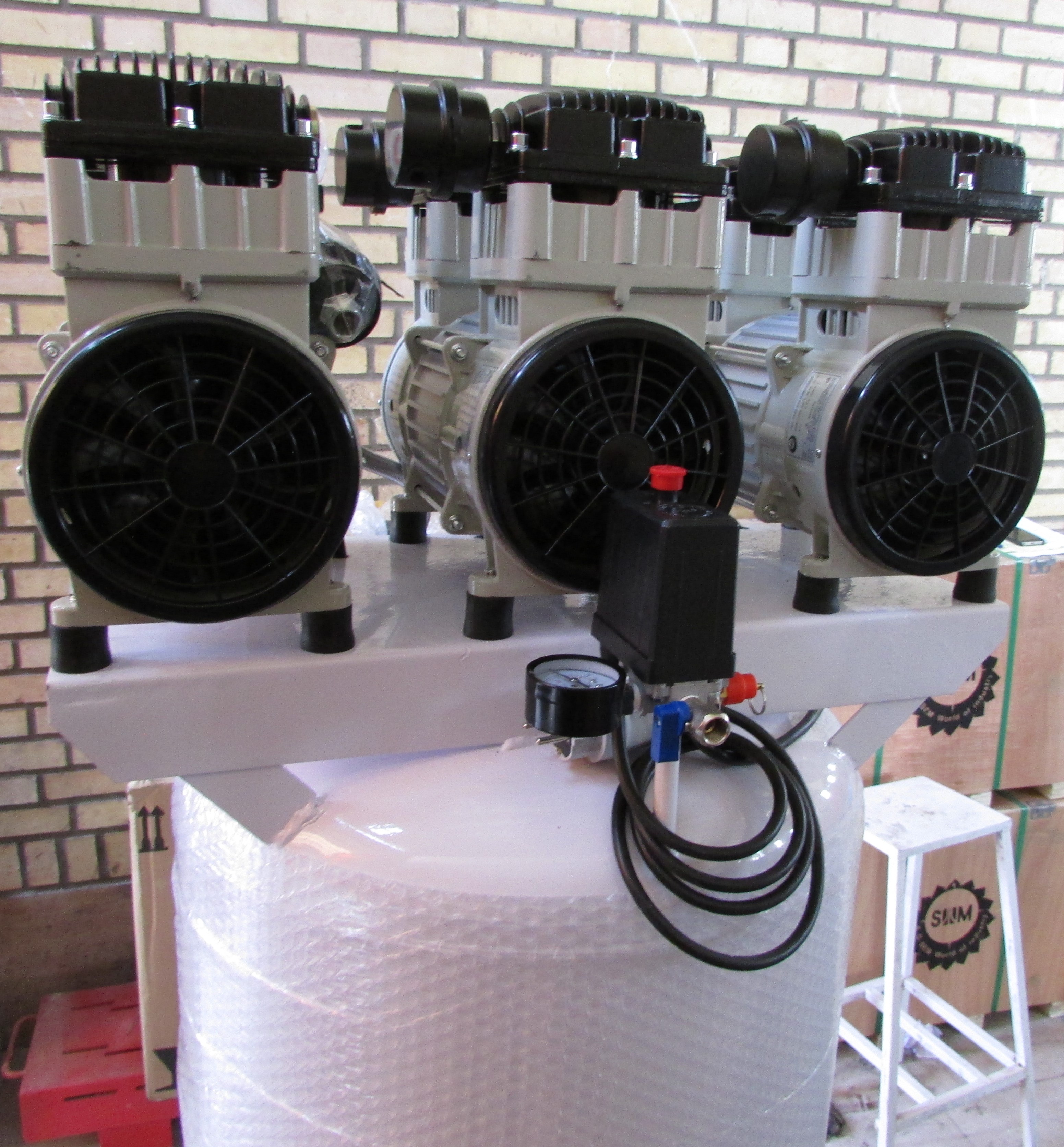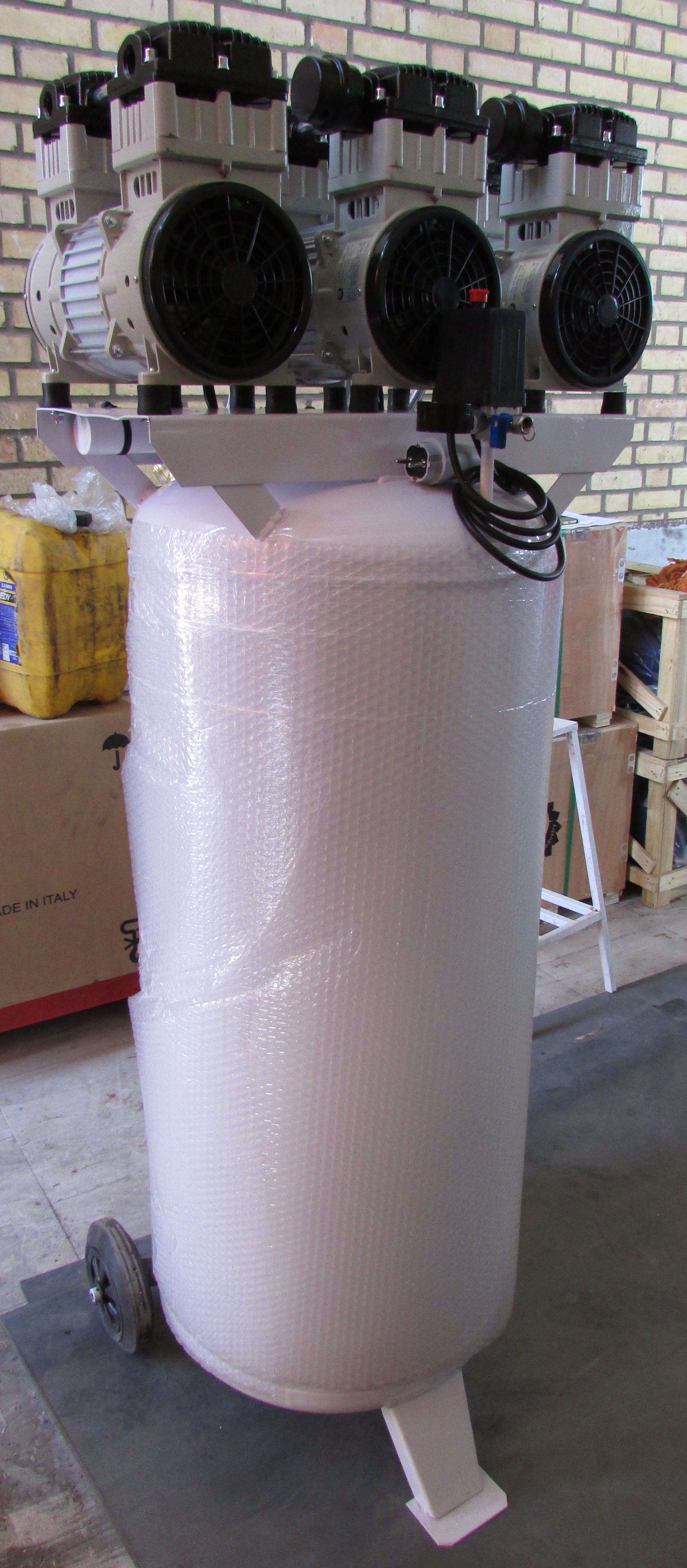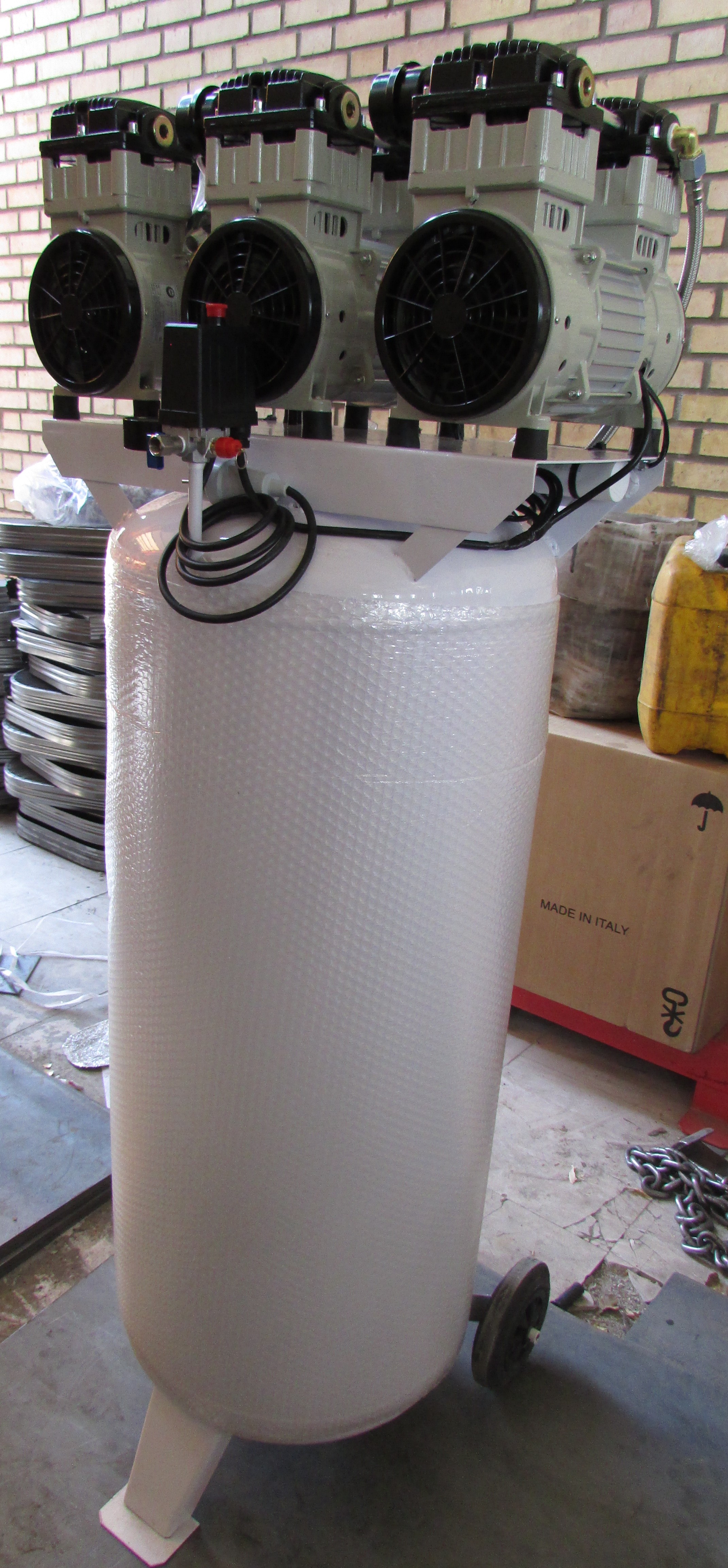 کمپرسور سایلنت ۲۵۰ لیتری ایستاده کیان کمپرسور با ۳ موتور پر قدرت ۱۵۰۰ وات اویل فری (سایلنت) به همراه تابلو برق تايمر دار و مخزن داخل اپوکسی، قابلیت تولید هوای فشرده پاک و بدون آلودگی، مناسب برای کلینیکهای دندانپزشکی و زیبایی و فضاهای بزرگ آزمایشگاهی، کارگاههای طلاسازی، صنایع بسته بندی و غذایی را دارا میباشد.استفاده از هواسازهای سایلنت برای این کمپرسور این دستگاه را برای فضاهای داخلی مانند مطبها ومناطق مسکونی مناسب کرده است. تابلو برق تایمرداراین کمپرسور مانع مصرف آمپر بالا در هنگام راه اندازی شده و امکان استفاده از کنتورهای برق شهری را میسر میسازد.