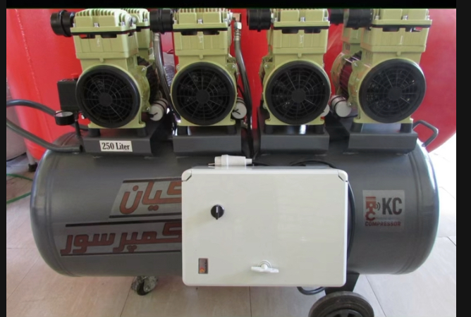 کمپرسور سایلنت ۲۵۰ لیتری خوابیده کیان کمپرسور با ۴ موتور پر قدرت ۱۵۰۰ وات اویل فری (سایلنت) به همراه تابلو برق تايمر دار و مخزن داخل اپوکسی، قابلیت تولید هوای فشرده پاک و بدون آلودگی، مناسب برای میلینگولابراتوارهای دندانسازی , کلینیکهای دندانپزشکی و زیبایی و فضاهای بزرگ آزمایشگاهی، کارگاههای طلاسازی، صنایع بسته بندی و غذایی را دارا میباشد.استفاده از هواسازهای سایلنت برای این کمپرسور این دستگاه را برای فضاهای داخلی مانند مطبها ومناطق مسکونی مناسب کرده است. تابلو برق تایمرداراین کمپرسور مانع مصرف آمپر بالا در هنگام راه اندازی شده و امکان استفاده از کنتورهای برق شهری را میسر میسازد.